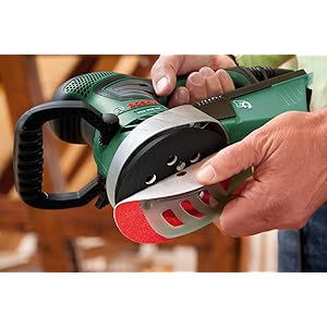 Le dispositif Paper Assistant Bosch permet de changer de disque abrasif facilement et rapidement tout en évitant l'endommagement du matériau dus à une mauvaise fixation de l’abrasif. Particulièrement maniable grâce à sa poignée supplémentaire et aux poignées Softgrip de forme ergonomique, le PEX 400 AE offre une prise sûre et confortable.