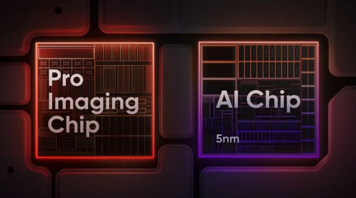 - 5nm AI chip enables generative AI artwork. subjects. and filters. plus AI Selfie Stick Remover and AI Warp effects at the ready