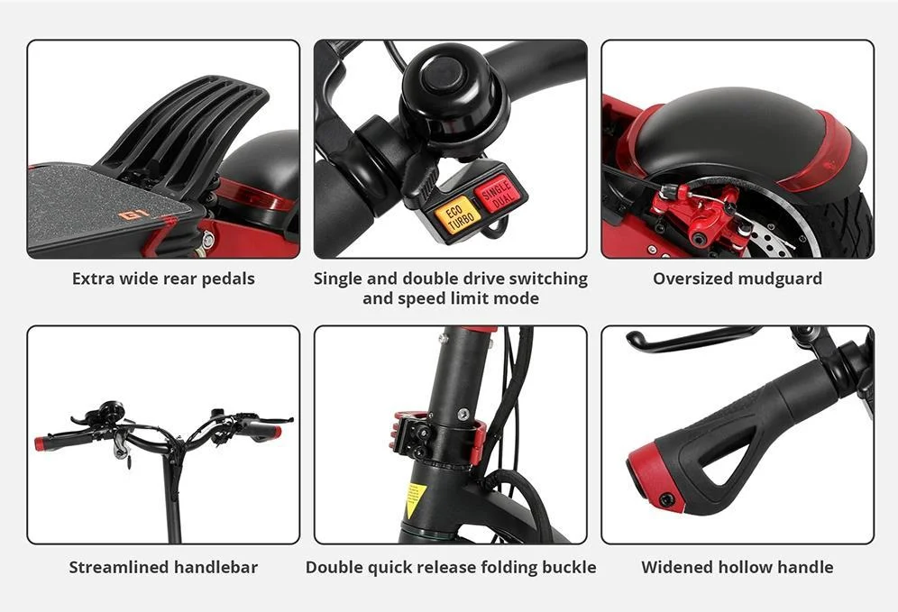 Specification General Brand KugooKirin Model Number G1 Color Black Classification Electric Scooter Size 135*32*62cm Gross Weight 38.1kg Net Weight 31.2kg Unfolded Size 130*65*134cm Folded Size 130*65*53cm Width of handlebar...