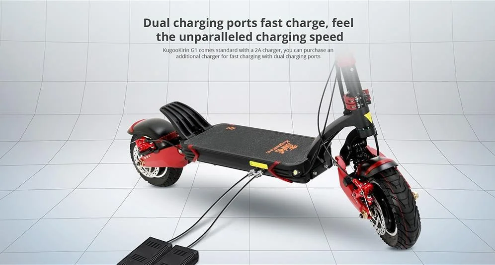 General Brand KugooKirin Model Number G1 Color Black Classification Electric Scooter Size 135*32*62cm Gross Weight 38.1kg Net Weight 31.2kg Unfolded Size 130*65*134cm Folded Size 130*65*53cm Width of handlebar 650mm Height of chassis 190mm Width of plate 234mm Max Load 150kg Waterproof IP54 Material Aluminium alloy Level 1 Top Speed 37 km/h Level 2 Top Speed 54 km/h Level 3 Top Speed 65 km/h Brake Disk + EABS E-brake Slope 15° Max Mileage 65KM Max brake distance 5M Max Speed 65km/h Motor Rated power 1000W Voltage 52V Instantaneous max power 1100W Max PRM 1454RPM Max output torque 29N.m Battery Capacity 18.2Ah Voltage 52V Charging Time 10 Hours for a full charge Standard power consumption kW.h 946Wh LED Beam 3pcs Power 1.5W Beam Angle 100° Beam Area 1M2 Charger Input Voltage AC100-240V Input Current 2.5A Output Voltage 58.8V Input Current 2A Tire Tube Size 10 inch *2 Type Pneumatic Tire Material Rubber Outer Tire Size 80/65-6A-3051 Type Pneumatic Tire Best pressure 345KPa Material Rubber Brake Disk Outer-Dia. ZDC-140-Z Inner-Dia 44MM 33MM Display Type OLED Size 130mm*112mm*35mm Display Content Level, Speed, Battery, Error code KM/H, MPH Function Cruise function Hold the accelerator up to 8 seconds by the same speed, Cruise function on KM/H to MPH/MILE Make Display to P02 to settle Package Content 1*Electric Scooter 1*User Manual 1*Charger 1*Toolkit -