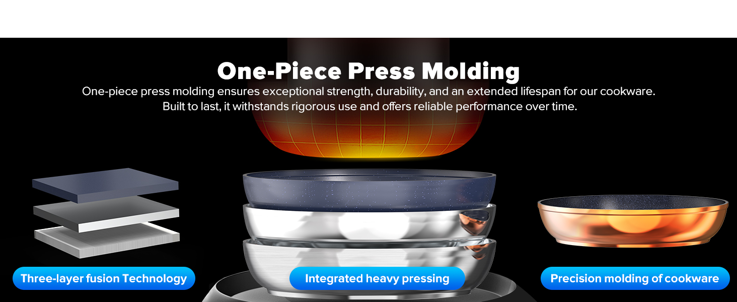 INDUCTION READY & EVEN HEAT DISTRIBUTION – Every cookware is bonded and reinforced with anti-warp SS plate on the bottom to make it induction ready. This bonding delivers fast, even heat distribution, and superior heat retention at any temperature.