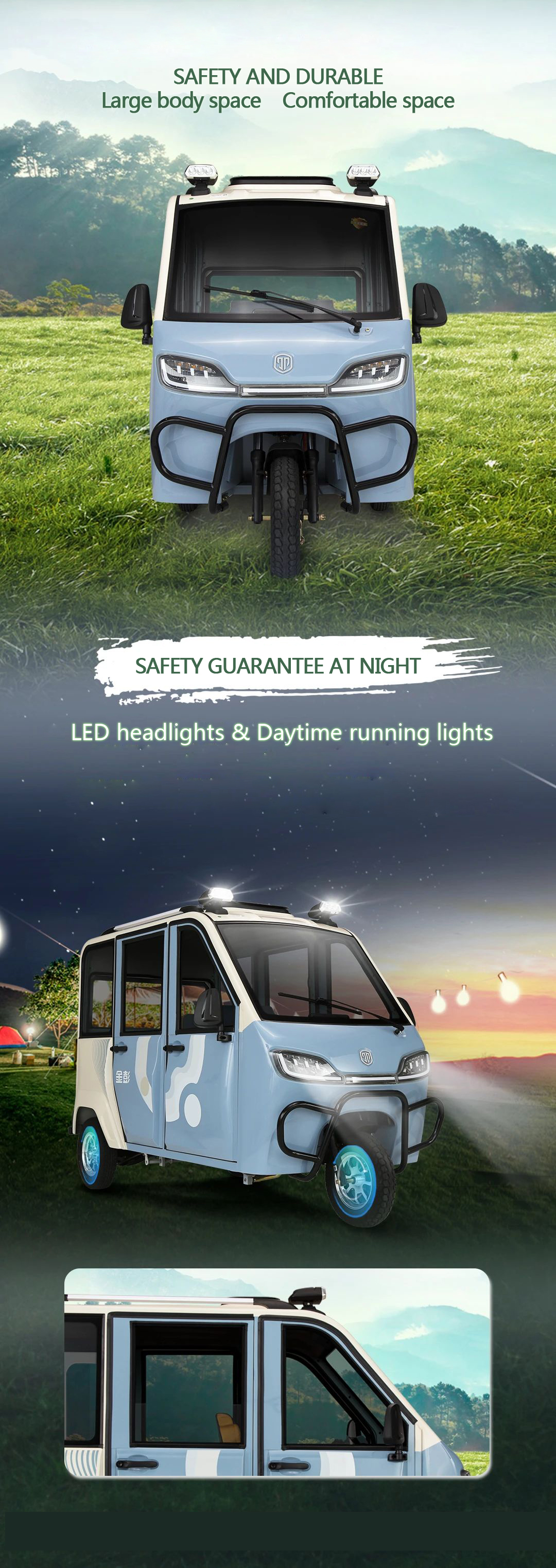 5doors 3seats Rainproof El elctric Passeneger Tricycle