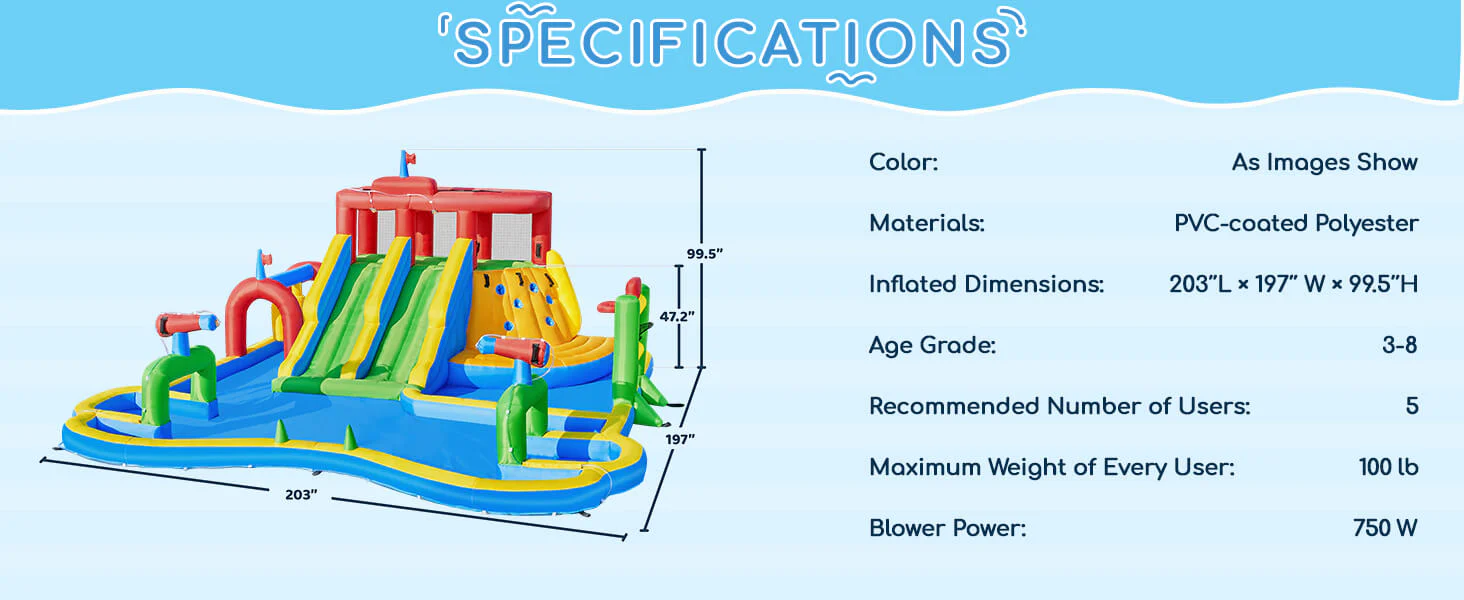 10-in-1 Double Lane Inflatable Water Slide for Kids Aged 3 to 8. Inflatable Slide Combo W/ Storage Bag & 750W Blower & Toys & Accessories